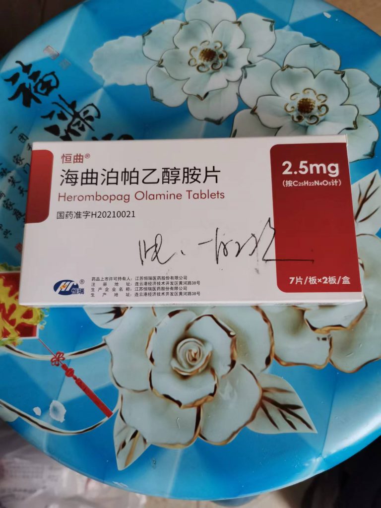 海曲波帕对中国免疫性血小板减少症(ITP)患者的疗效已在III期试验(NCT03222843)中得到证实。大多数经历减量至停药的患者经历了复发。海曲泊帕的长期治疗可有效增加中国ITP成人患者的血小板计数并将其维持在所需范围内。海曲波帕耐受性良好。