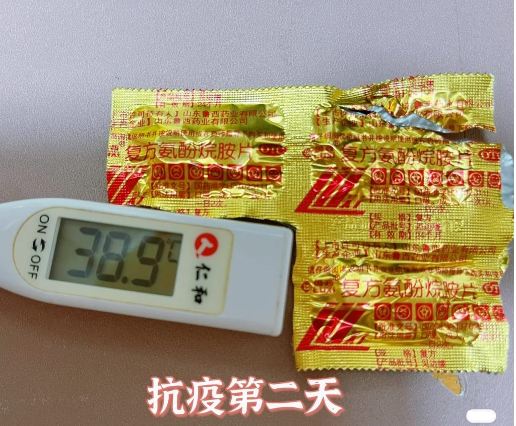 昨天晚上12点左右吃了一片去痛片就休息了。但有点失眠,感觉脑门紧紧的,一直半睡半醒的状态到今天早上6点多。起来给房间通风10分钟、灌点水,量了体温38.2,于是吃了一片复方氨酚烷胺片烷氨酚烷胺片,差不多半个小时药发挥作用,感觉头部轻松了,身上微汗,补了2个小时觉。今天主要的症状一是发热,白天温度38-38.7之间,刚刚量了温度38.9。发热有两种感觉,有时候是觉得浑身很热,脚心手心发热;有时候是脑门眼睛发热,但手脚冰凉,畏冷。二是关节疼,膝关节、手肘关节、肩颈比较明显(我觉这症状跟我的未分化结缔组织病有关,所以没有停硫酸羟氯喹,正常在吃,不敢随便停药)。三是轻微嗓子有痰、流清水鼻涕以及鼻子冒火这些普通感冒症状,不是很严重。暂时嗅觉味觉没什么问题,也没有拉肚子。