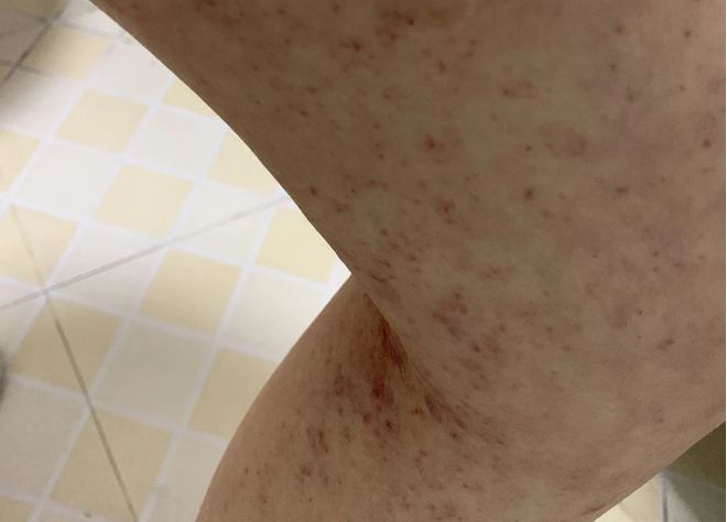 过敏性紫癜一年多,在郑州治疗了七个月腿上还是零星出小点,检查… 得了新冠昨天发烧39度几,今天退烧了,屁股后面 大腿后面又出了好多红色小点,像这种情况是复发了吗?