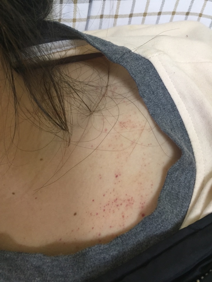 但是既然杨医生都那么说了,肯定就是没事儿。但是我后来发现姐姐貌似身上很爱淤青,磕一下碰一下的就青了。平时是没有什么症状,也没有出血点,但是她脖子那里她要是抓几下就爱出红点,就是那种貌似淤血的状况。我的血小板正常,夏天天气热的时候抓几下也会有,但是没有她那么明显。我知道姐姐的血小板毕竟是低,肯定有一些影响,会比正常人脆弱一点。但是那些红点是不是就是出血点呢?一想到这,我又担心了。因为姐姐一直没有什么症状,所以我们也没见过出血点,想问一下那些算出血点吗?