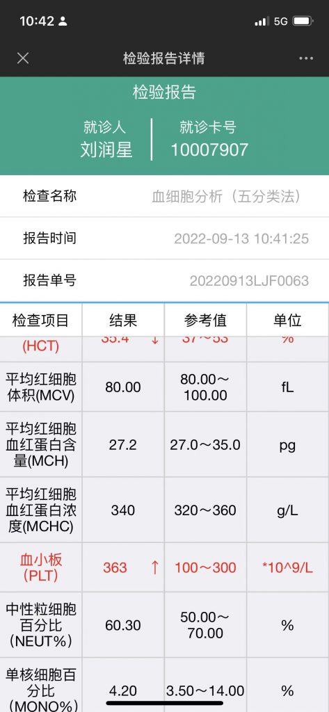 2021.12.27日 血小板19 儿研所入院前