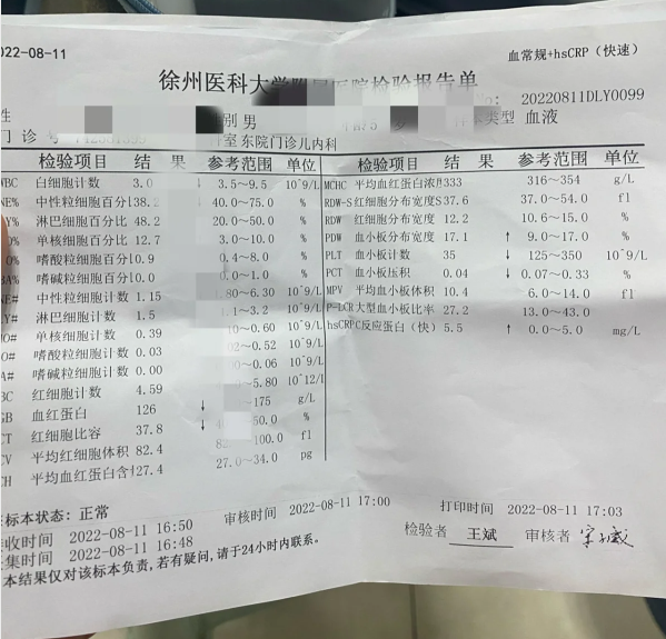 8.8日,小朋友突然高热不退,体温计爆表,退烧药丝毫不起作用。带着去急诊检查,结果血常规出来后,血小板低到36,简直就是晴天霹雳!两年前幼儿园入园体检的时候,小朋友血小板低过一次53,后续10天左右时间自行恢复了,也没当回事!这次突然这么低,加上医生说的很恐怖,各种出血啥的。想着之前在湖南省儿童医院看过一次,就赶紧咨询了之前看过的老中医,网上找了他给看报告。老教授说,典型的病毒感染导致血小板减少,让喝中药调理,不要害怕。心里这才好过一些,12号左右赶紧让老公从长沙拿了药回江苏,给小朋友喝上。