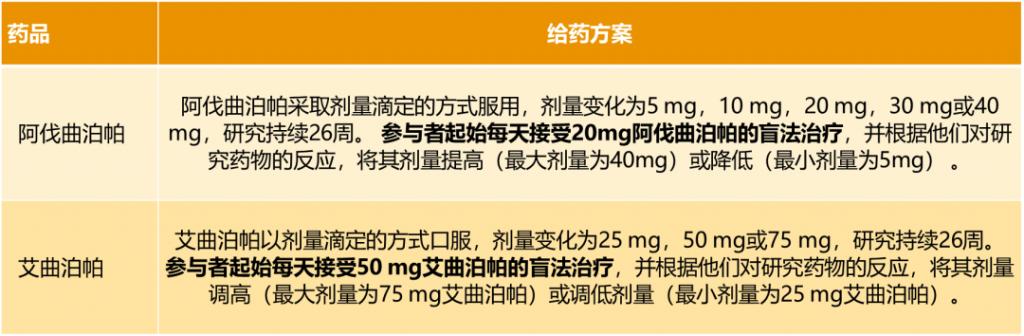 研究目的:阿伐曲泊帕和艾曲泊帕非劣效对比。