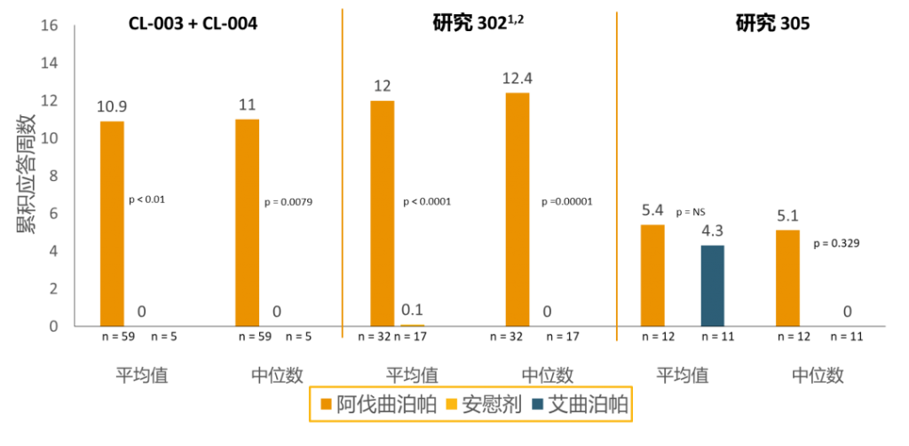 (2)累计应答周数—阿伐曲泊帕累计应答时间更长