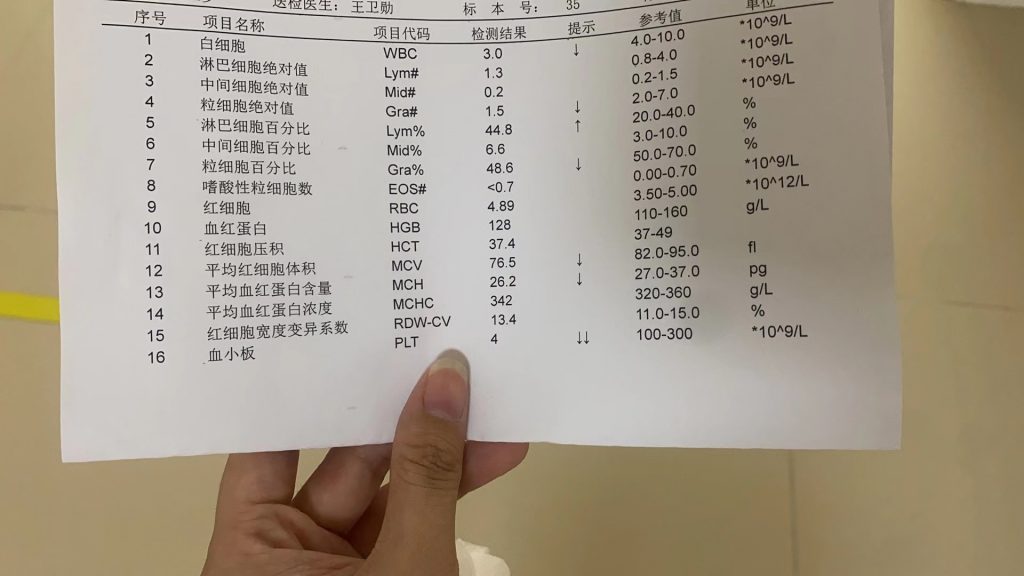 3月3日复查血小板只有4,从天堂直接摔了下来,复杂的心情难以言表。