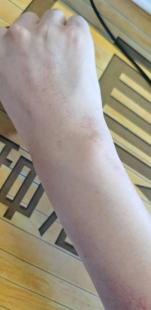 2015年之前胳膊上也曾出现过出血点,当时每次来月经,月经量都很多,因为当时不懂,也没太在意。6月体检血小板5万,医生建议到大医院复查。当时也没多想,老公带着我就去了市里最好的医院,血液科医生看完检查结果,只说了句血小板太低了,你做个骨穿吧,你这病得住院治疗,然后就给我开了住院手续。当时真的有点蒙了,心里七上八下的胡思乱想,手里拿着医生开的住院手续,一脸迷茫的走出医生办公室,对等在门口的老公说了一句“医生让住院呢”。老公安慰我说别着急,应该没事的,再找个医生好好咨询一下。当天又换了一家医院,通过熟人找到血液科的医生,医生也是建议做骨穿。因为当时心里很害怕就没做骨穿。医生很耐心的询问了我的情况,考虑到我平时月经量过多,建议我做了相关检查,结果显示缺铁性贫血很严重,建议我先补铁,改善贫血状况,随时观察血小板情况。