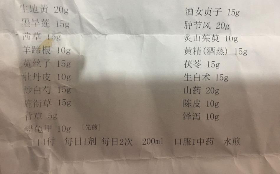 来住院的当天,陈建一大夫开了中药,医院住院期间,护士每天早晚送煎好的中药过来,中药每次开方子都是 14 副药,机器一次性煎好之后放冰箱。停掉之前的所有药(环孢素,激素)继续吃钙片。
