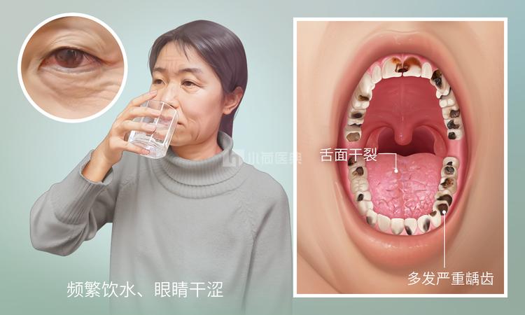 既往患者有反复发作的腮腺炎史(当时以为是牙痛),有口干两年,频繁饮水,未予重视,无明显眼干症状,无夜尿增多,曾查血糖正常。否认其它疾病史。