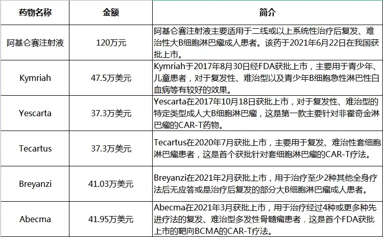 国内外仅单纯CAR-T药物费用就120-300万元之间