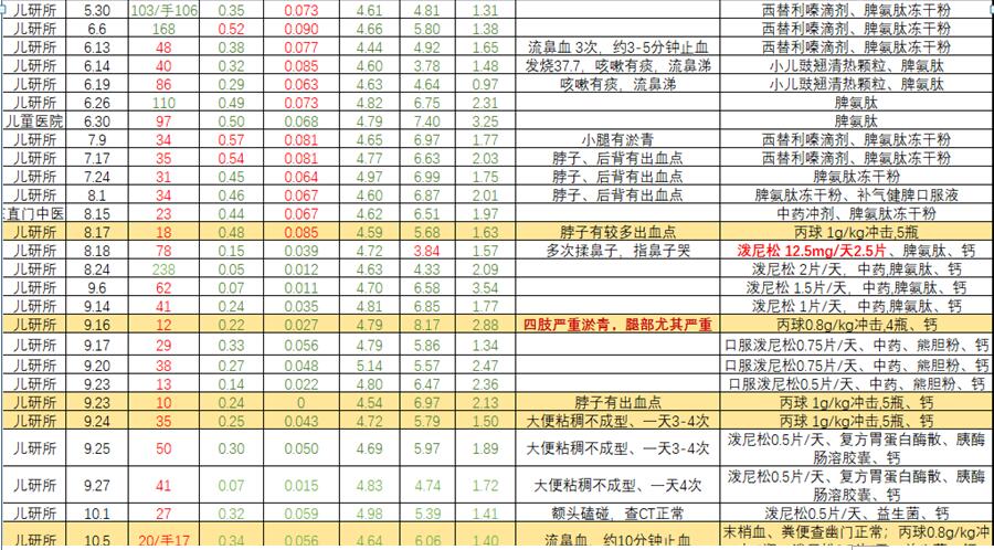 孩子的血小板成了我们的祈求,每次的跌落换来的是我们的心惊胆颤,每一次的小升,每一次都略感轻松。在跌宕起伏中看着公子小公主们成长,呵呵,像侍候一颗秧苗一样,生怕遭受风雨,也许是我们需要体谅做父母的辛酸,现在体谅过了,才知道父母也是在这样照顾我们的。所以还有父母健在的就多孝顺一下他她们吧,我从8岁就失去了母爱,我30时我父亲也离我而去,想想这一生也算够辛酸了,还不知这小公子还要给我再制造多少困难,总之再多的困难也会过去的,我坚信一切都会好起来的,所有的孩子们都会好起来的,他们会和一切正常孩子一样享受入学,享受家庭,衷心祝愿我们的宝宝们吧。