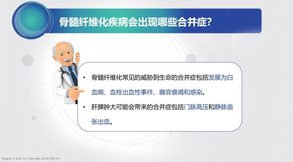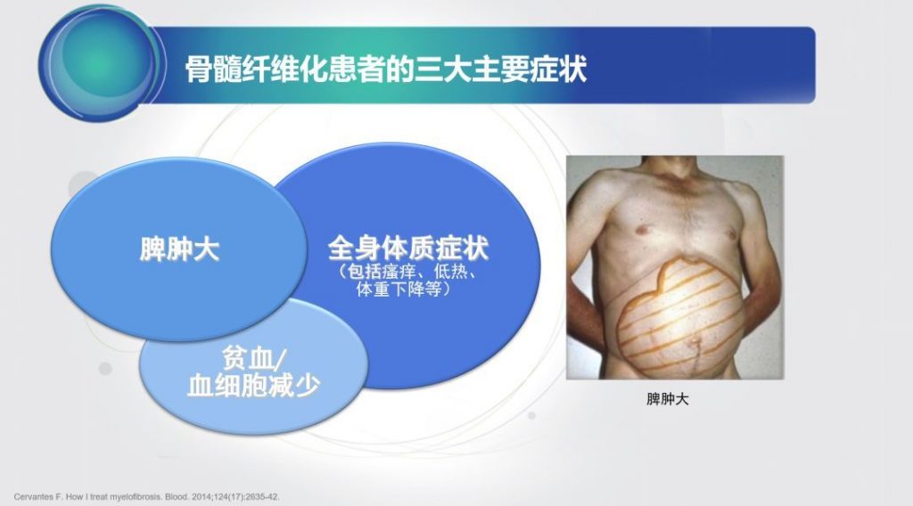 骨髓纤维化常发生于50-70年龄段人群,是一种原因不明的骨髓增殖性疾病,可继发于慢性粒细胞性白血病、真性红细胞增多症、原发性血小板增多症、多发性骨髓瘤等恶性血液病,或骨结核、骨髓炎、苯中毒等疾病。主要表现为骨髓中成纤维细胞增殖,胶原纤维沉积,同时由于骨髓造血功能受到抑制,髓外造血器官如肝、脾的造血功能又重新得到激活,导致肝、脾的肿大,而以脾脏肿大较明显。目前骨纤仍属于难治性疾病,传统的治疗手段只能一定程度上改善症状,对延长生命无明显作用。