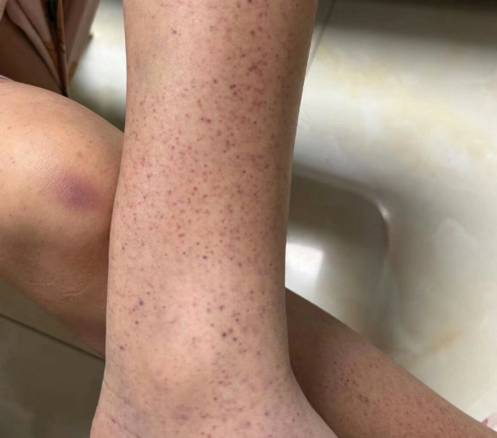 但过了三四天整个小腿还有脚几乎都长满了红色的一片一片的东西。我害怕了,赶紧又去那个医院,但挂号没挂到那个医生,是另一个,她让我等第二天的专家号,我第二天挂到了皮肤科专家号,医生说我是变应性血管炎,给我开了激素药,一天三颗,(我当时也不知道激素药有这么大的副作用,而且也不知道我的情况根本就不需要吃激素)我就按医生说的吃,我也问了我需不需要忌口休息,医生说一点事没有,啥也不用忌,我也就听医生的了。后来我中间还感冒过一次。我就一星期挂一次专家号挂了一暑假。后来就开学了,我上学一劳累又复发了,我也没有去以前那个医院。