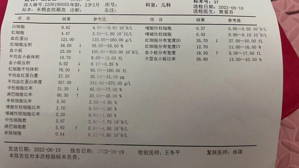 42周去复检,我血小板61,小孩300多