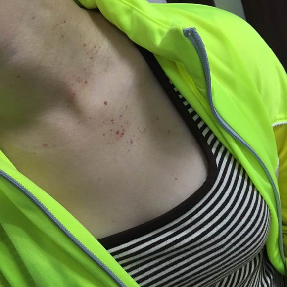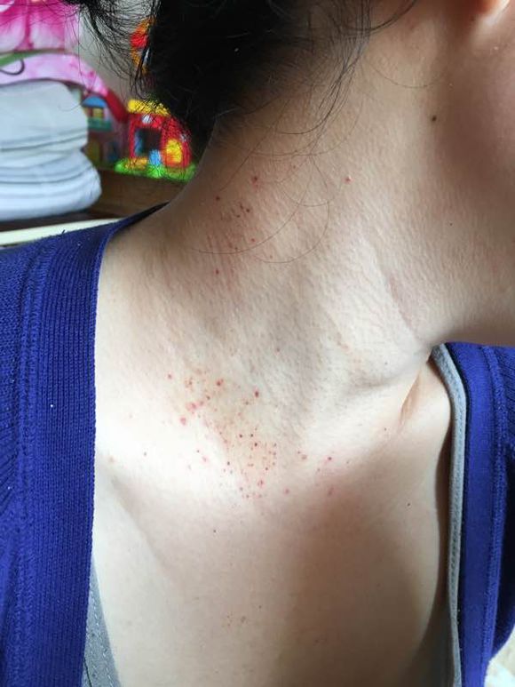 大概一两个月之前,颈部有一小片小红点,过几天就消失了,我就没在意,现在才知道那是皮下出血点因为血小板低才会出现。如图: