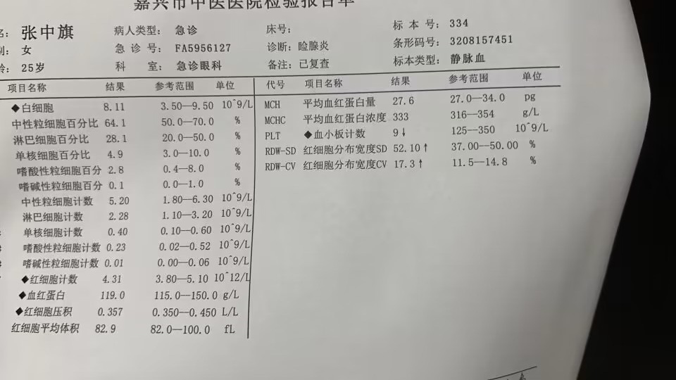 吃药前血小板16吃了11副以后,血小板不升反降,已经掉到了9个。家里人彻底慌了。