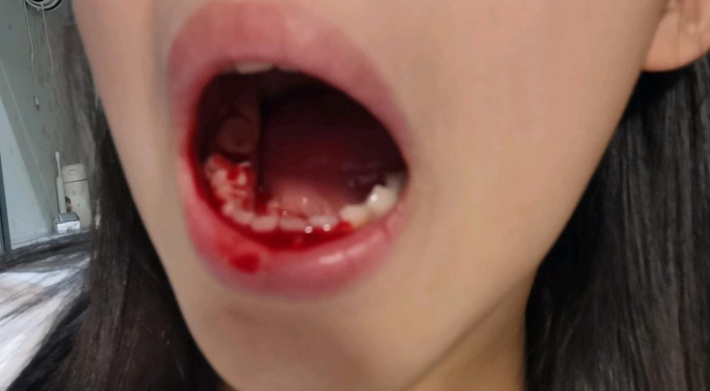 5.15起床牙齿又有血块,口腔和嘴唇有几个血泡,腿上的红点渐渐变紫,扩散到膝盖上,当天在家什么事不做,睡觉,想可能太累了,睡一觉就没事了。(我这人皮肤对花草很过敏,也怀疑是皮肤问题)